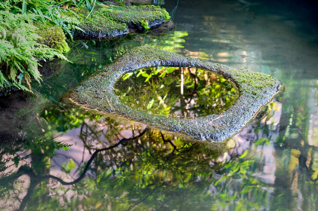 Le jardin qui réunit l’eau, la pierre, la main de l’homme, est un endroit de sérénité et de réflexion. Dans le bassin vivent des koïs colorés qui deviendront un jour des dragons. C’est un endroit propice à la médiation et au calme que les visiteurs respectent, la plupart du temps, mais pas toujours malheureusement.