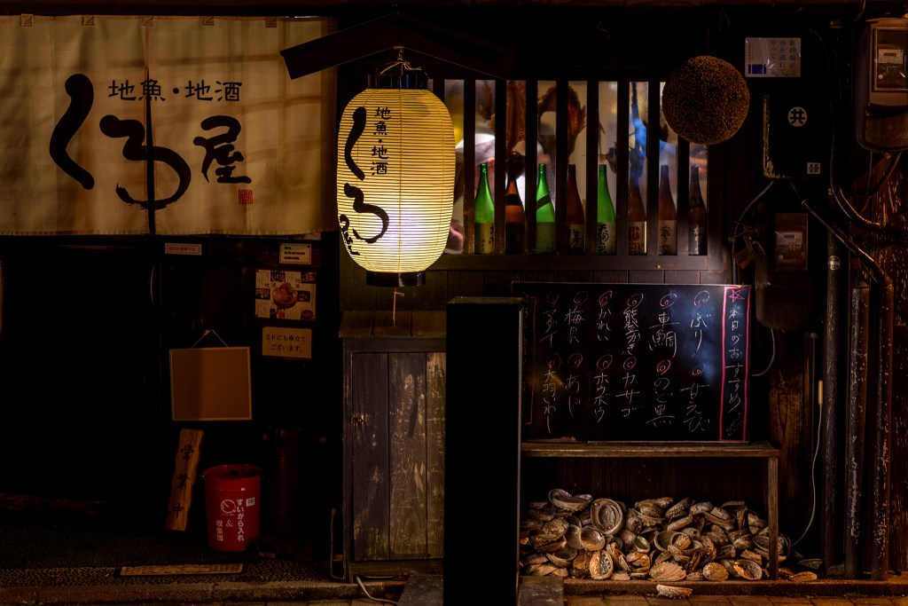 Elle m’a reçu avec un joyeux sourire en disant お帰り. Amaneko est une amie de Takashi, je lui annonce qu’il sera là bientôt et la nouvelle lui fait visiblement plaisir ; Takashi n’est plus revenu à Kanazawa depuis mon dernier passage lors de l’été 2023. J’offre le saké à Amaneko, c’est la coutume au Japon. il n’y a pas de pourboire mais on offre au moins un verre à la patronne ou au patron lorsqu’on les connaît ou si on veut faire connaissance et se montrer poli.