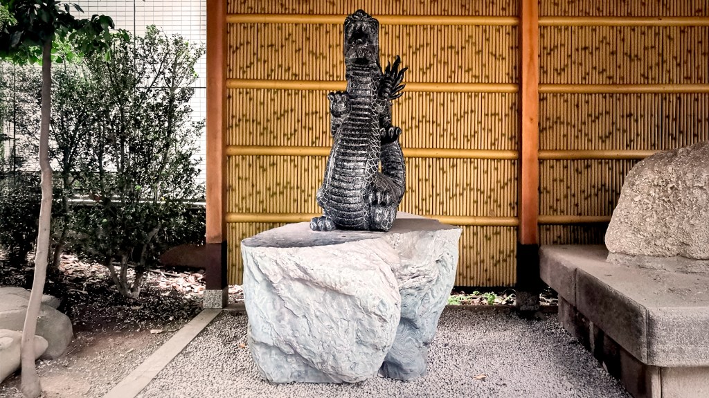 Nous nous sommes retrouvés au 田無神社 dédié au cinq dieux dragons. C’est un petit temple à l’ouest de Tōkyō où les touristes ne viennent pas. Il m’a fallu à peu près une heure en métro et en bus pour y arriver, une durée normale dans l‘immense Tōkyō où se déplacer est tellement facile et évident lorsqu’on a assimilé les principes de base.