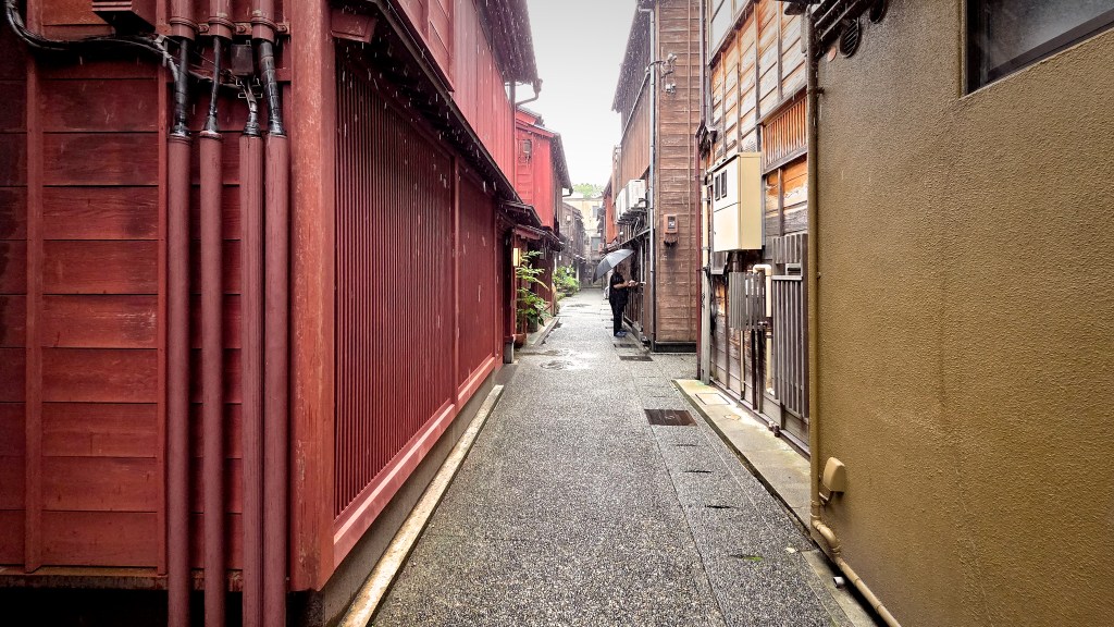 Même sous la pluie, Kanazawa est belle, elle est pour toujours mon premier amour au Japon. Petit accroc à l’impermanence. Peut-être les premières fois sont-elles des choses qui demeurent d’une certaine manière. La première fois à Kanazawa a été magique, presque irréelle, je l’ai déjà raconté, chaque fois que j’y reviens, marcher dans cette ville unique m’émeut autant sinon plus.