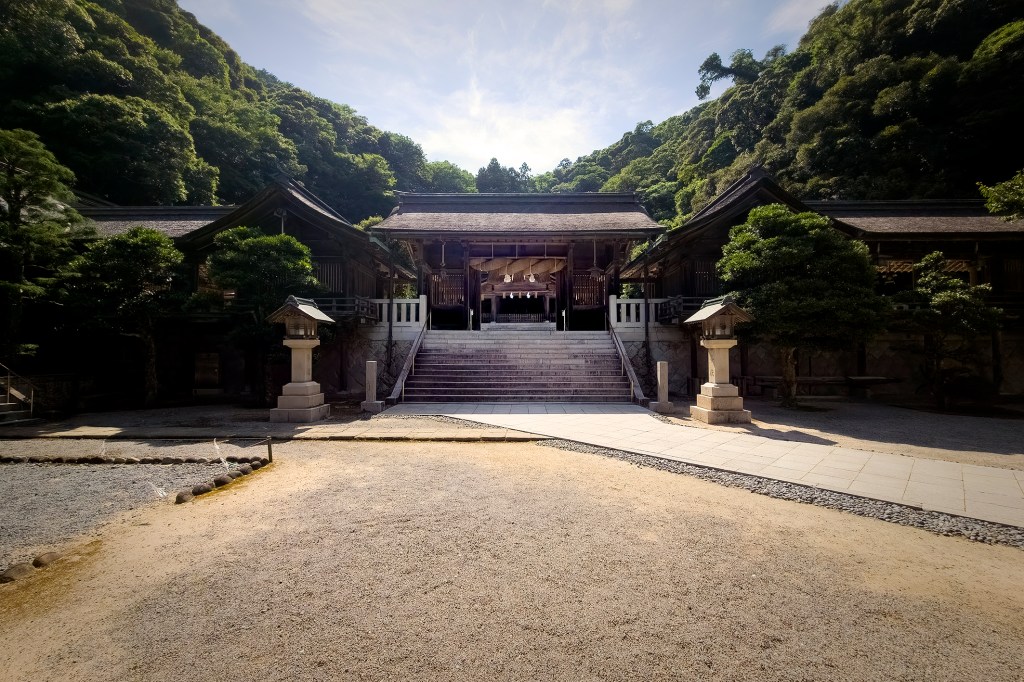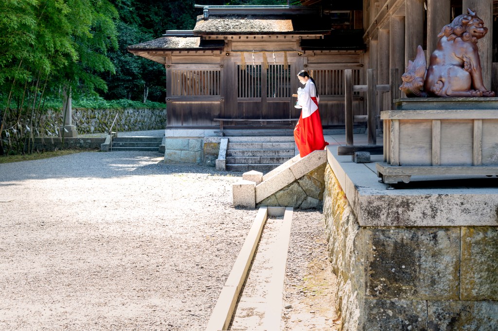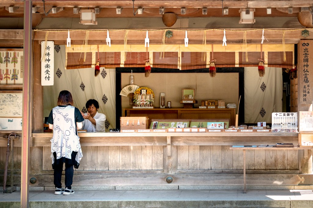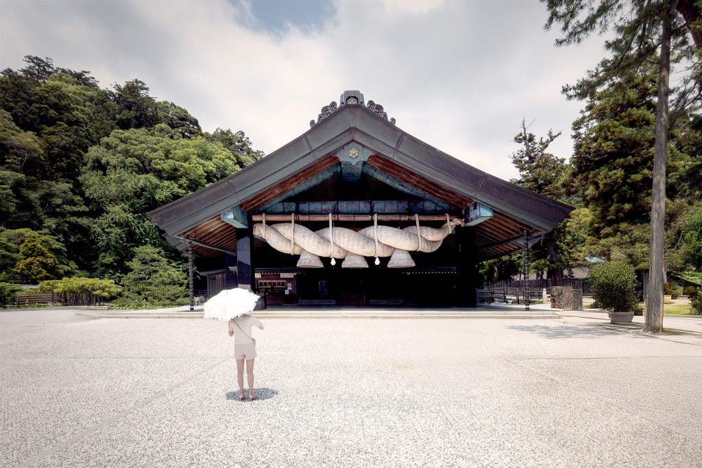La préfecture de Shimane possède une géographie particulière. Sa capitale au nord, Matsue, est flanquée de deux grands lacs, le Shinji et le Nakaumi. Au-dessus de ceux-ci, des bras de terre s’avancent à gauche et à droite dans la mer formant des péninsules à l’aspect particulier. Je me rends au bout de la péninsule nord-est pour découvrir le Miho jinja, un sanctuaire shinto consacré à Ebisu, dieu de la pêche, de la prospérité et des commerçants, et à Mihotsuhime, divinité agraire liée à la fertilité et aux récoltes.