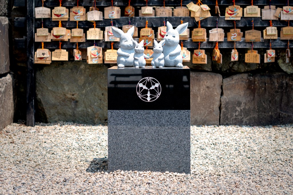 Voilà pourquoi il y a partout des lièvres dans l’enceinte de l’Izumo Taisha. L’animal est directement associé à l’élévation d’Ōkuninushi au plus haut rang du panthéon shintoïste qui contient un nombre incalculable de divinités. Le contraste est saisissant avec la majesté des bâtiments qui imposent le respect et montrent par leur ampleur et leur beauté l’importance du lieu. Partout autour des bâtiments principaux, à l’intérieur et à l’extérieur de l’enceinte, il y a de tout petits sanctuaires discrets où les vœux se font en regardant la nature, la forêt, une chute d’eau.