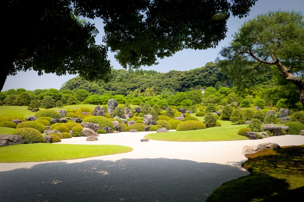 Dans la petite maison de thé de l’Adachi Museum of Art, l’eau est portée à ébullition dans une bouilloire en or pur. Ces bouilloires traditionnelles symbolisaient la chance, elles devaient apporter à ceux qui en buvaient l’eau bonheur et longévité. Deux fenêtres rectangulaires, comme des rouleaux suspendus, offrent des tableaux changeants du plus beau jardin du Japon. Quatre femmes sont entrées et boivent le thé matcha avec moi. Elles viennent de Kyoto et nous partageons la douceur suave, un peu amère, du thé à l’aspect de mousse verte. Résultat de l’émulsion de la poudre de thé mélangée à l’eau à l’aide d’un fouet de bois et servie dans un large bol irrégulier de terre cuite. L’élégance du wabi-sabi s’allie à la douceur de notre conversation. Tout est simple, beau, parfaitement harmonieux. Le temps s’arrête un peu, ralenti gentiment. Les regards se perdent, les cigales chantent, le monde est beau.
